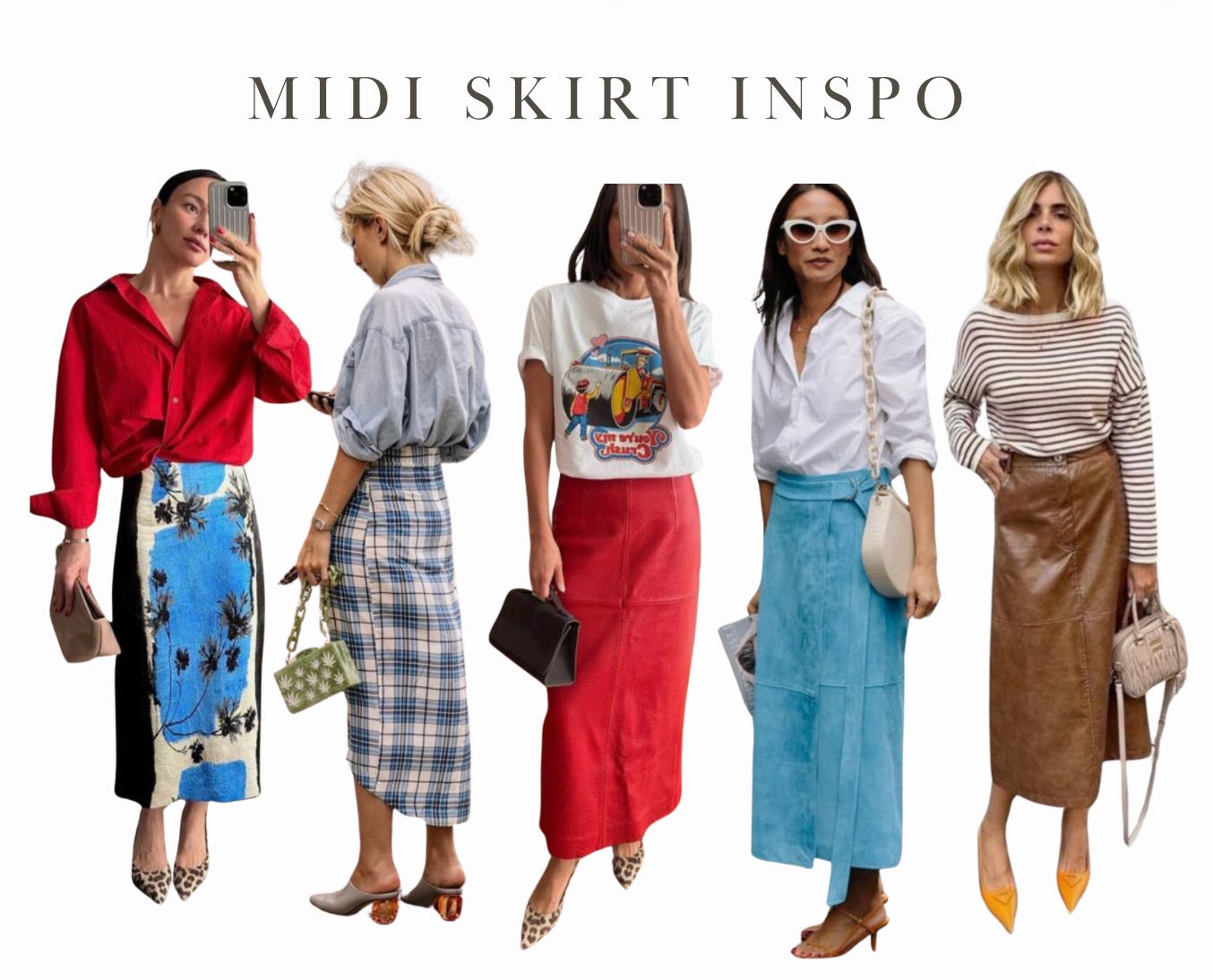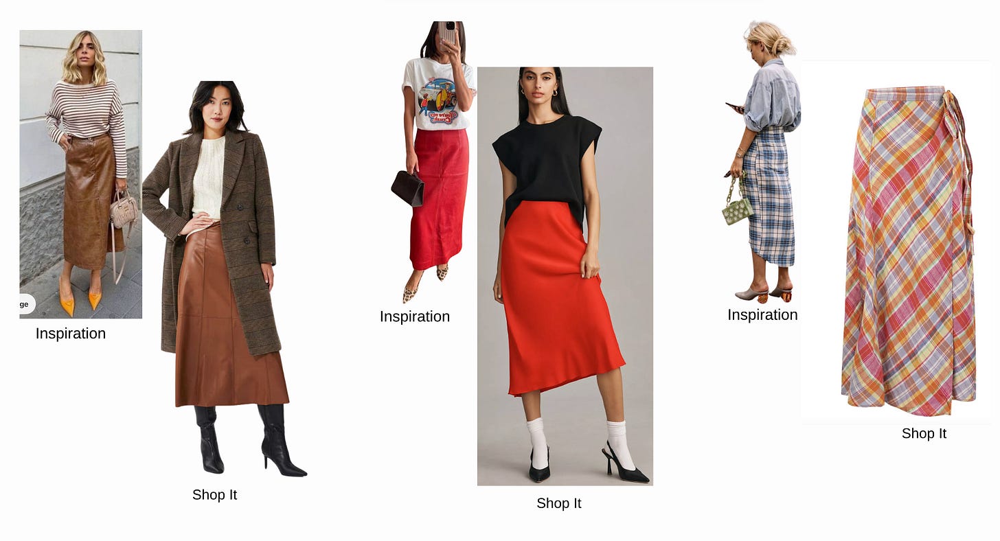 As you curate your inspiration boards on Pinterest, I’ll be sharing some of my favorite outfits to keep the creativity flowing. For instance, here’s some midi skirt inspiration I’ve saved on Pinterest as a go-to reference for my own looks!