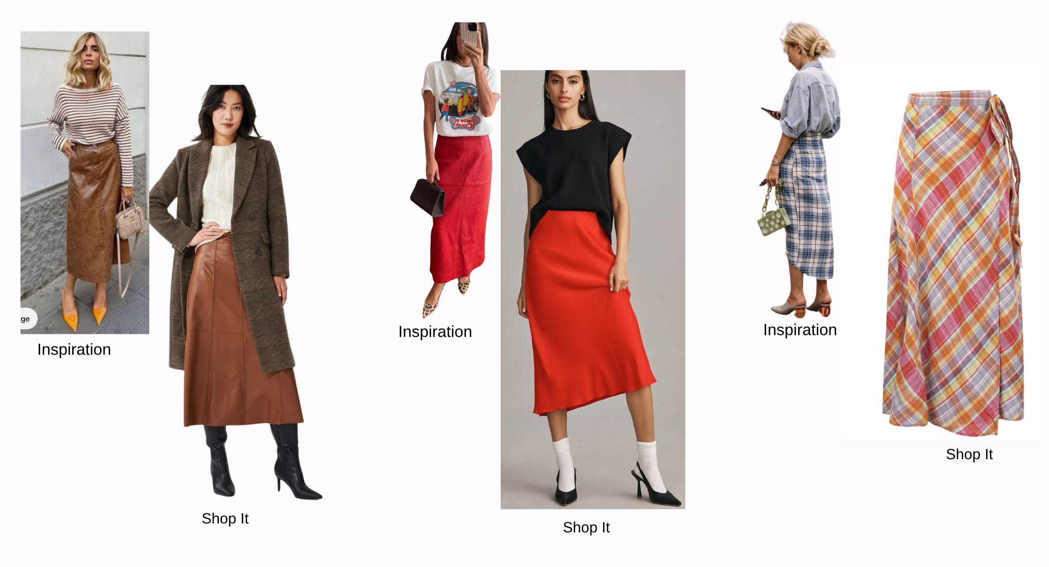 Shop the links: Brown Skirt, Red Skirt, Plaid Skirt